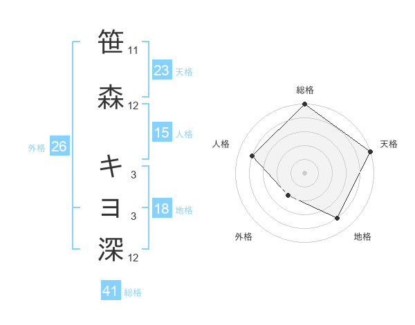 笹森 キヨ深さんを姓名の画数から五運を鑑定