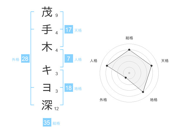 茂手木 キヨ深さんの総格は35画の4点!