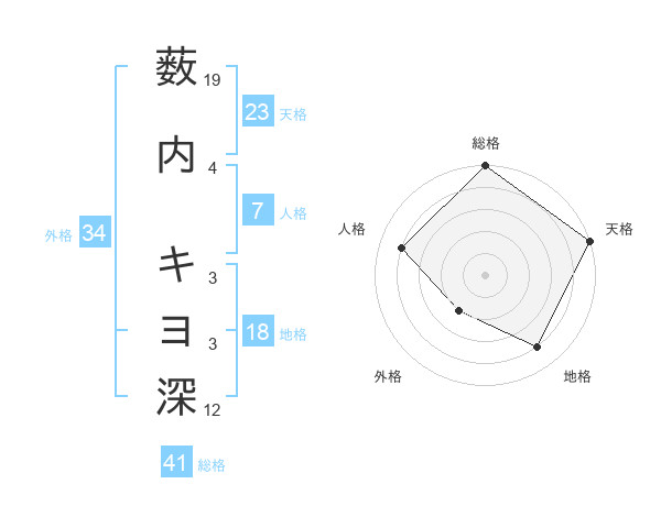 薮内 キヨ深さんの天格は23画の5点!