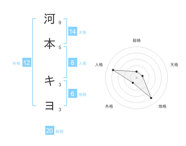 河本 キヨさんの総格は20画の1点!