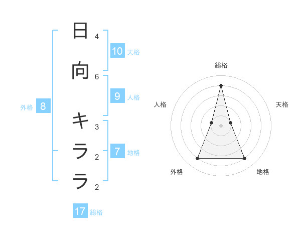 日向 キララさんの総格は17画の4点