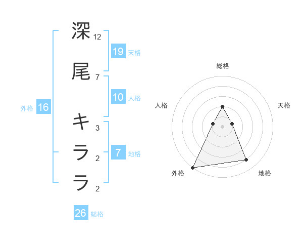 深尾 キララさんの総格は26画の2点!