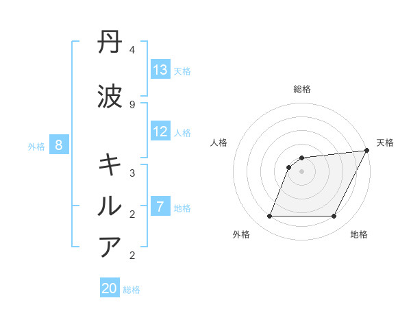 丹波 キルアさんの天格は13画の5点!