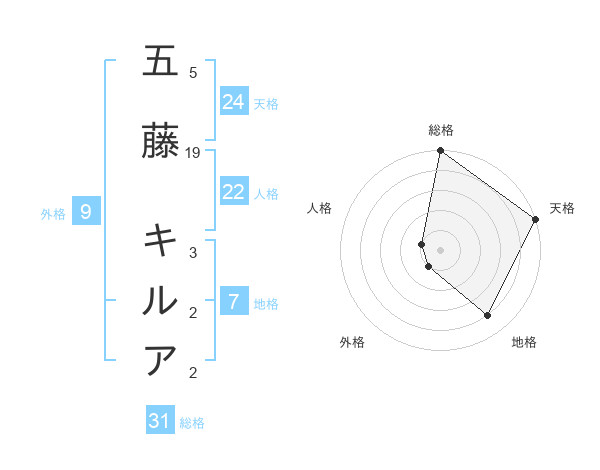 五藤 キルアさんを姓名の画数から五運を鑑定
