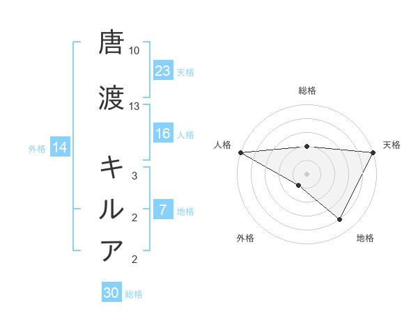 唐渡 キルアさんの総格は30画の2点!