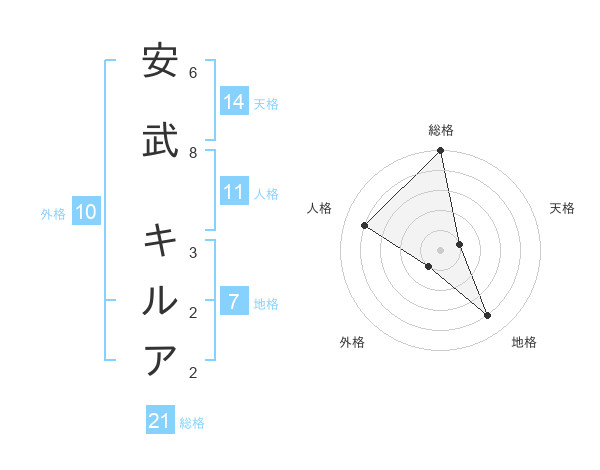 本サイトの鑑定結果の正当性は保証しません。鑑定結果は参考程度にお読みください。実際の名づけにご利用される場合は、姓名判断についてご自身でよくお調べください。