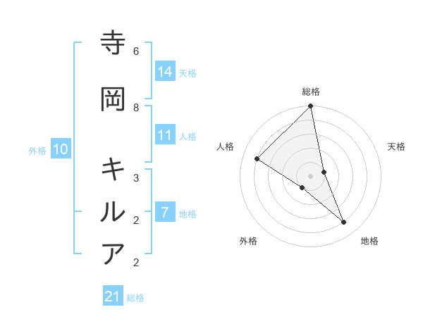 寺岡 キルアさんの総格は21画の5点!