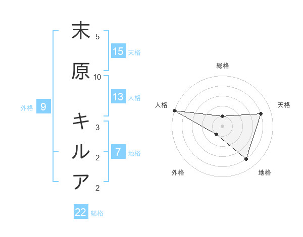 末原 キルアさんの総格は22画の1点!