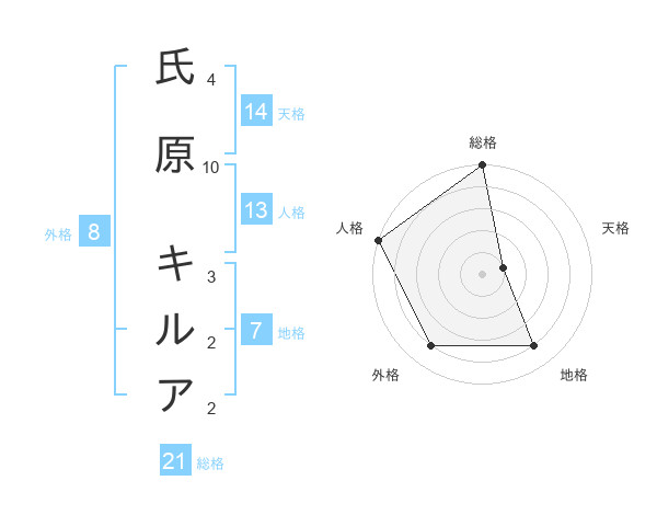 氏原 キルアさんを姓名の画数から五運を鑑定
