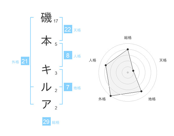 磯本 キルアさんの外格は21画の5点!