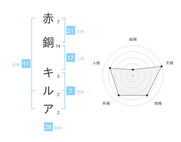 赤銅 キルアさんの天格は21画の5点!