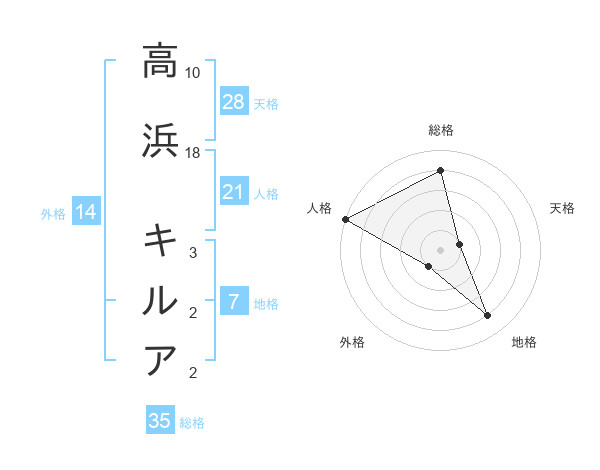高浜 キルアさんを姓名の画数から五運を鑑定