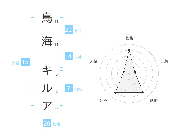鳥海 キルアさんの総格は29画の4点!