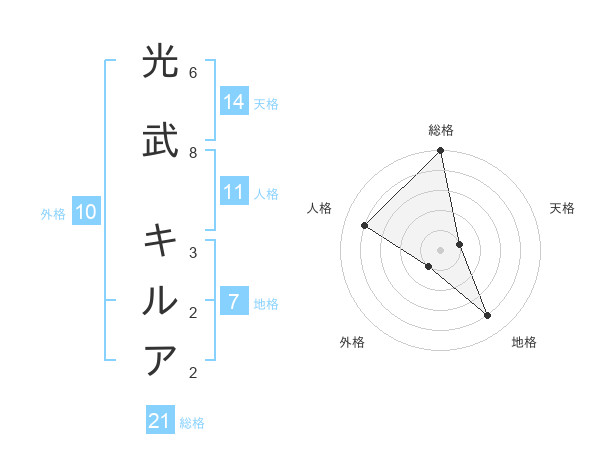 光武 キルアさんの地格は7画の4点!