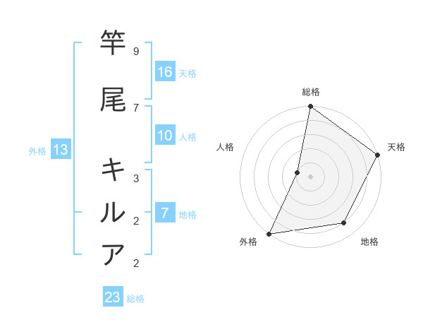竿尾 キルアさんを姓名の画数から五運を鑑定