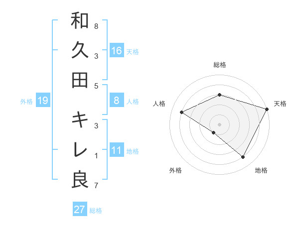 和久田 キレ良さんを姓名の画数から五運を鑑定