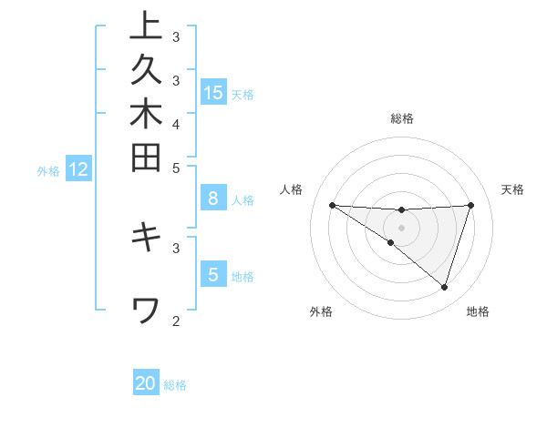 上久木田 キワさんを姓名の画数から五運を鑑定