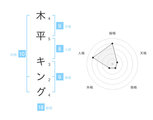 木平 キングさんの総格は18画の4点!