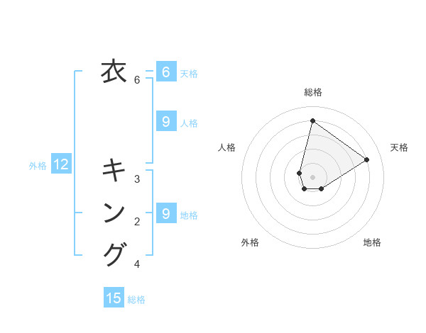 衣 キングさんの総格は15画の4点!