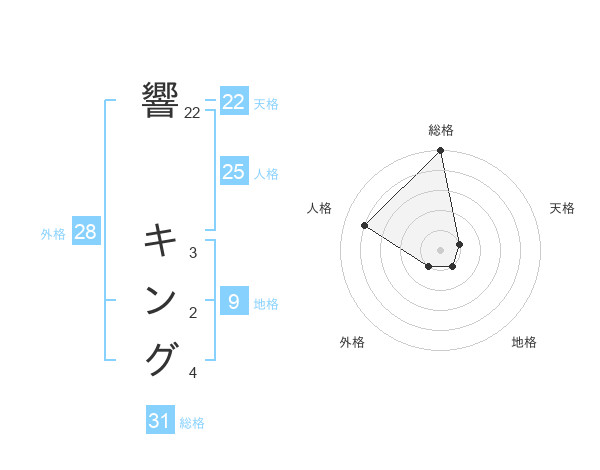 響 キングさんの総格は31画の5点!