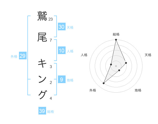 鷲尾 キングさんを姓名の画数から五運を鑑定
