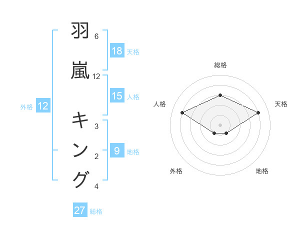 羽嵐 キングさんの天格は18画の4点!