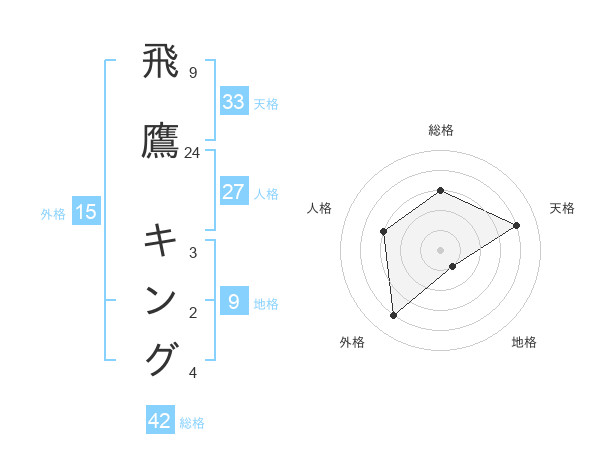 飛鷹 キングさんの総格は42画の3点!