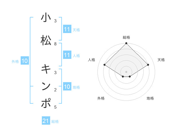 小松 キンポさんの総格は21画の5点!