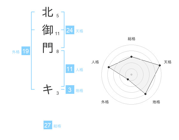 北御門 キさんの総格は27画の3点!