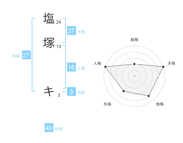塩塚 キさんの天格は37画の5点!