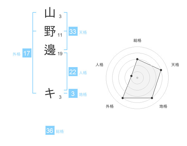 山野邊 キさんの天格は33画の4点!
