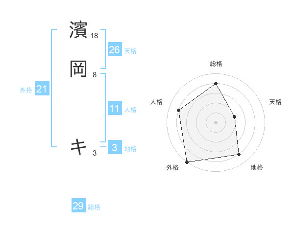 濱岡 キさんの総格は29画の4点!