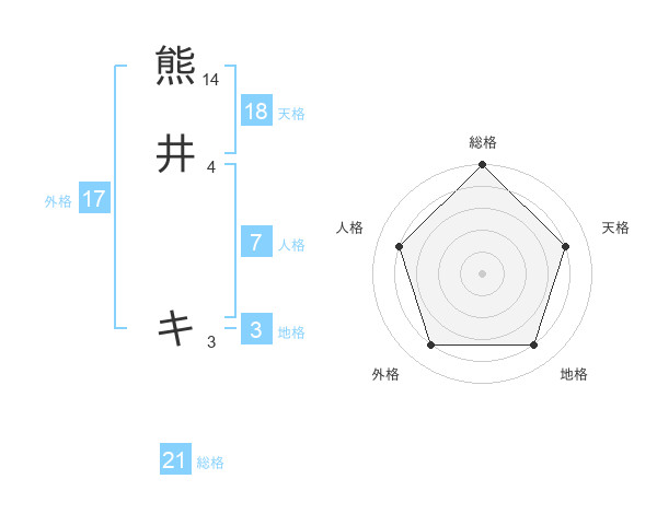 熊井 キさんの総格は21画の5点!