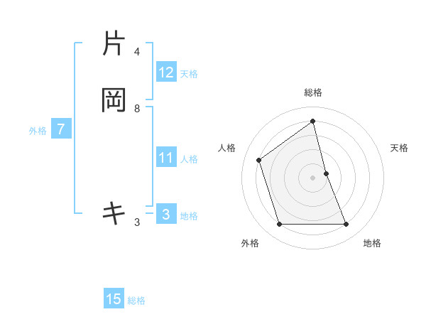 片岡 キさんの総格は15画の4点!