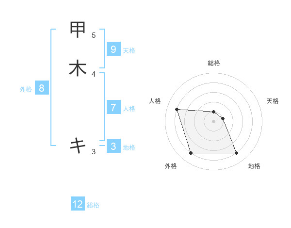 甲木 キさんの総格は12画の1点!