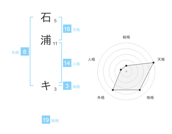 石浦 キさんの天格は16画の5点!