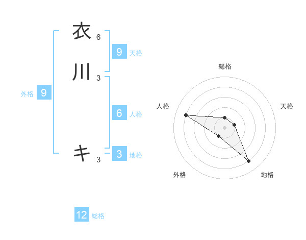 衣川 キさんの総格は12画の1点!