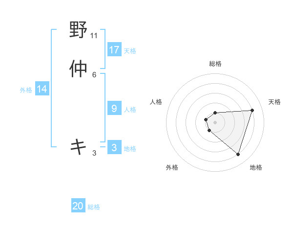 野仲 キさんの天格は17画の4点!