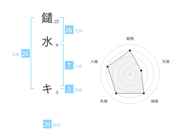 鑓水 キさんの総格は29画の4点!