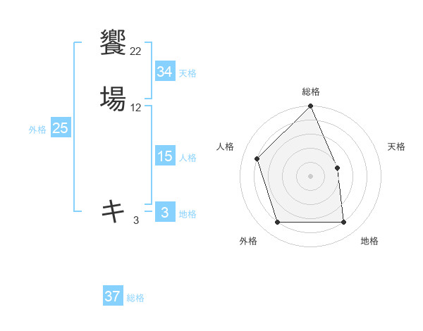 饗場 キさんの総格は37画の5点!