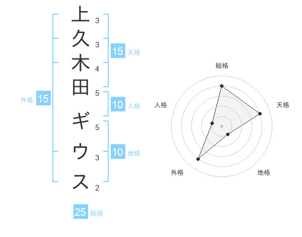 上久木田 ギウスさんの外格は15画の4点!