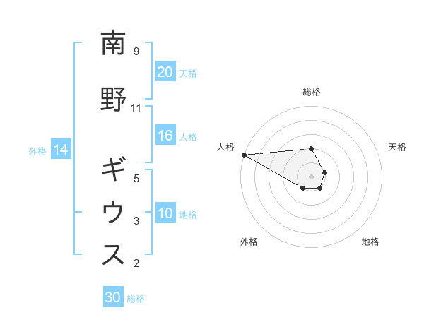 南野 ギウスさんの天格は20画の1点!