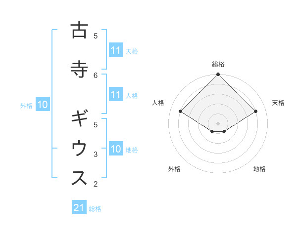 古寺 ギウスさんの総格は21画の5点!