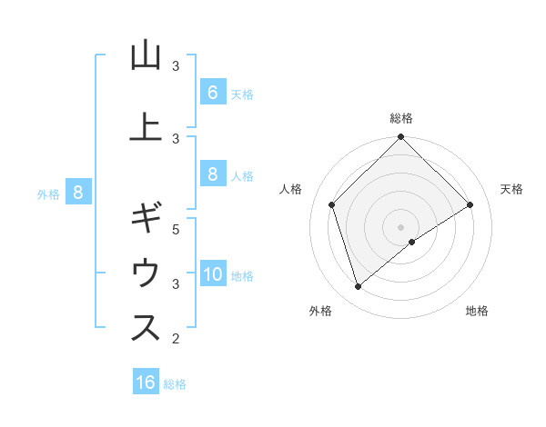 山上 ギウスさんの地格は10画の1点!