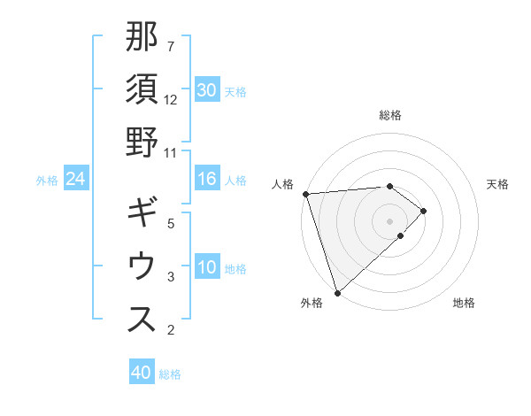 那須野 ギウスさんを姓名の画数から五運を鑑定