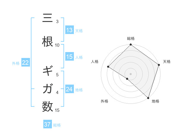三根 ギガ数さんを姓名の画数から五運を鑑定