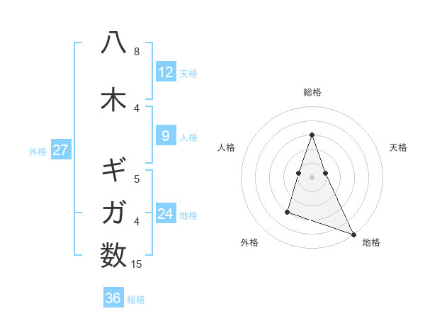 八木 ギガ数さんの総格は36画の3点!