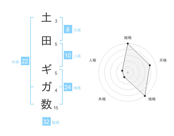 土田 ギガ数さんの総格は32画の5点!