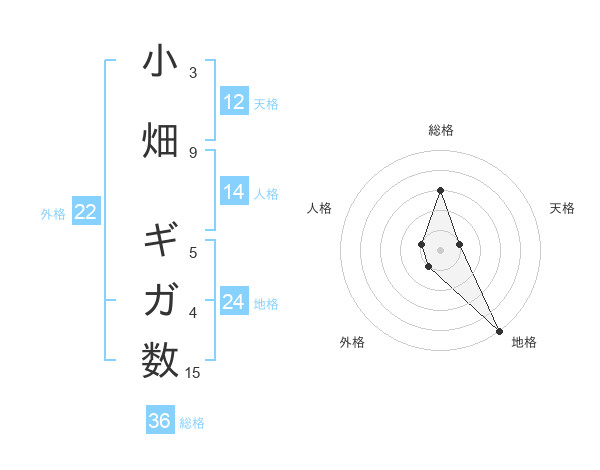 小畑 ギガ数さんを姓名の画数から五運を鑑定