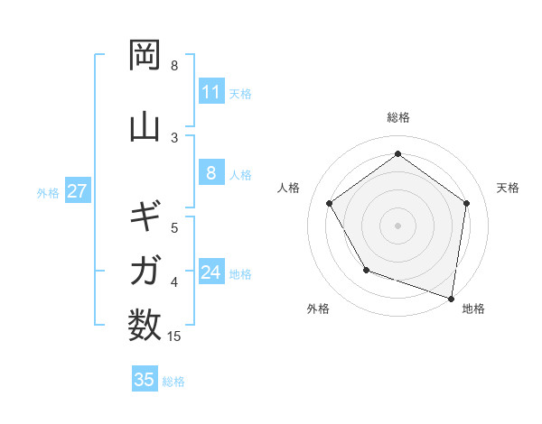 岡山 ギガ数さんを姓名の画数から五運を鑑定